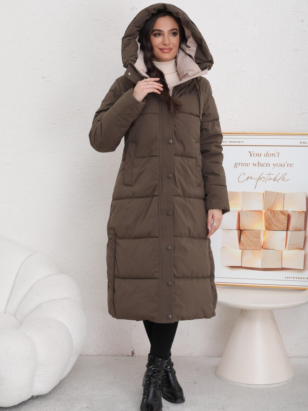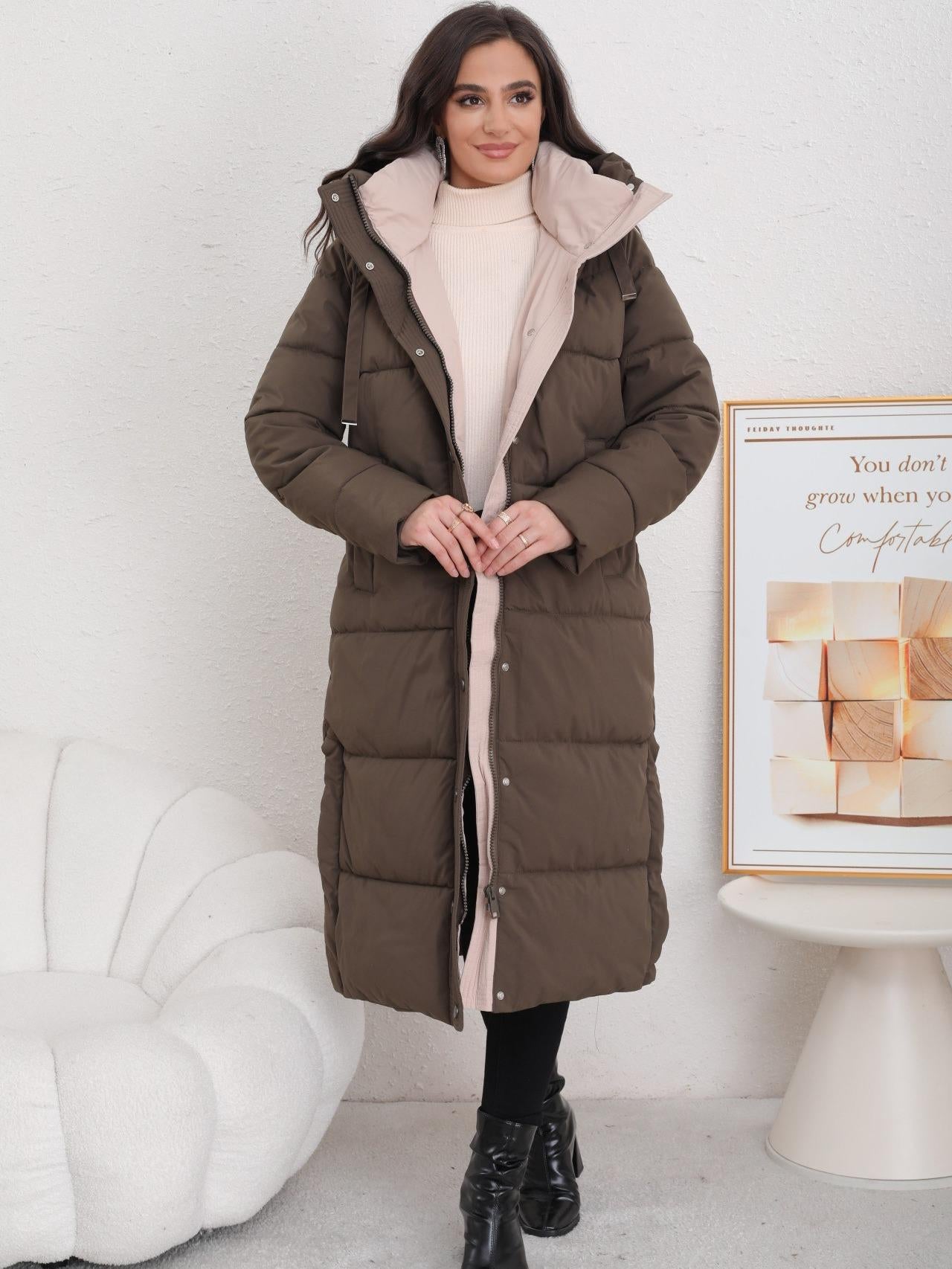 Cette doudoune longue est conçue pour le confort des femmes. Fabriquée en matériau doux, elle offre une sensation de douceur toute la journée. La capuche ajoute une touche de style et de protection. Parfaite pour les journées où le confort est essentiel.